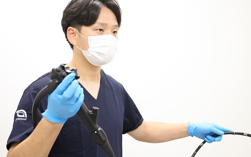 当院では、静脈内鎮静法にも対応しており、眠っているような状態で内視鏡検査を受けていただけます。胃カメラ(胃内視鏡検査)は嘔吐反射が起こりにくい経鼻内視鏡に対応し、大腸カメラ(大腸内視鏡検査)では無送気軸保持短縮法を取り入れて負担を軽減しています。胃と大腸の検査を同日に行うことも可能です。