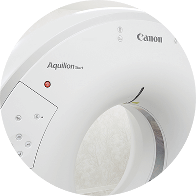 AI技術を搭載したCT(Aquilion Start)を導入しています。AIによる自動画像解析でノイズを低減し、少ない被ばく量ながら高精細な画像を取得することが可能です。短時間でより正確な診断が行えるため、患者さんの身体的な負担を軽減し、安全で質の高い検査を実現します。