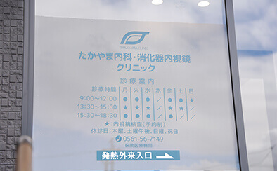 地域の皆さんが安心して通えるよう、通院しやすい環境づくりを大事にしています。土曜日も診療を行い、日曜日には内視鏡検査にも対応しているため、平日はお忙しいというかたにも便利です。駐車場は20台分をご用意し、名鉄バス「西原」停留所から徒歩すぐ、国道363号線沿い・DCM21瀬戸店向かいに位置しているため、公共交通機関でもお車でも快適にお越しいただけます。